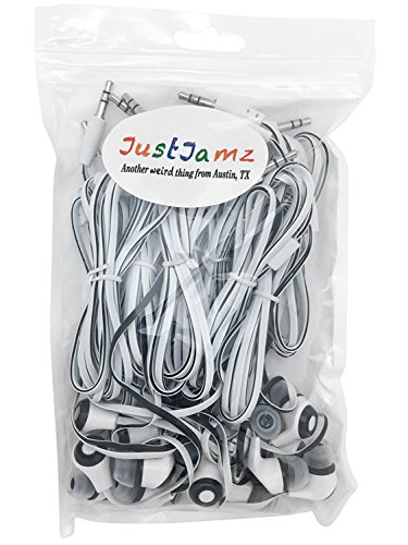 JustJamz 2.0 In-Ear Earbud Headphones (10 Pack) 3.5mm Stereo Simple Design Black and White