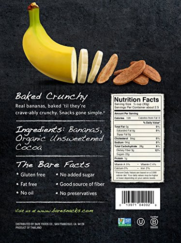 Bare Natural Banana Chips, Gluten Free Plus Baked, 2.7-Ounce Bags, Cocoa, 6 Count