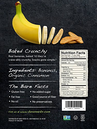 Bare Natural Banana Chips, Gluten Free Plus Baked, 2.7-Ounce Bags, Cinnamon, 6 Count