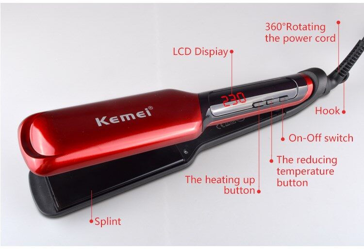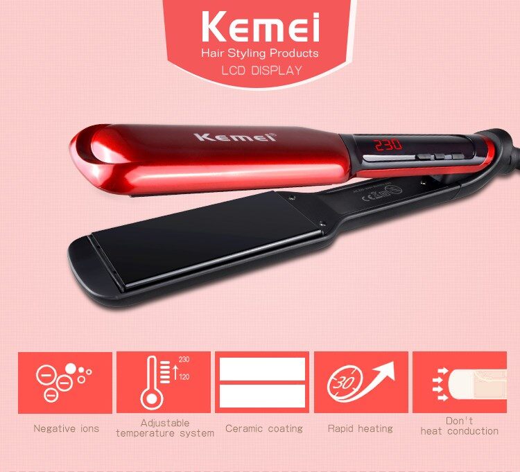 Kemei LCD Display Flat Iron Digital Temperature Control Straightening Irons Ceramic Hair Straightener 120-230 Degree Ajustable