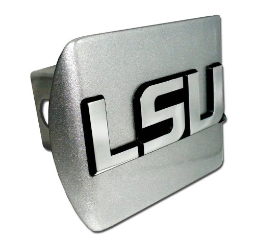 LSU LOUISIANA STATE UNIVERSITY TIGERS "BRUSHED SILVER WITH CHROME "LSU" EMBLEM" NCAA COLLEGE SPORTS TRAILER HITCH COVER FITS 2 INCH AUTO CAR TRUCK RECEIVER