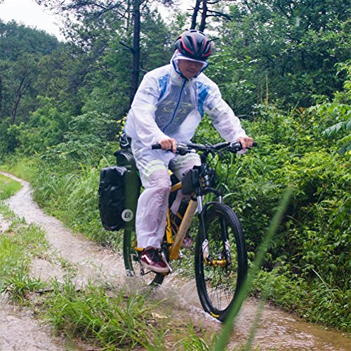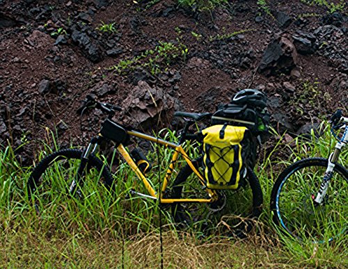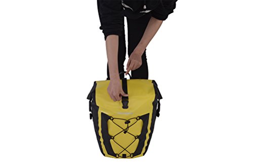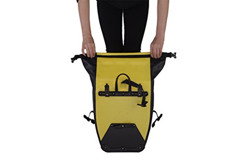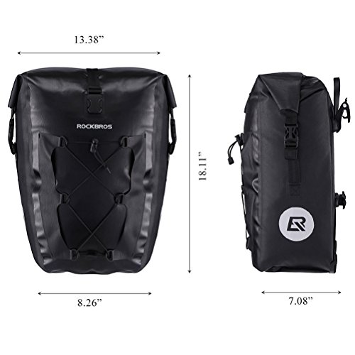 Reflective logo for sporting safety at night. Large capacity, about 27L, very convenient to carry many things needed in the journey. Very portable and easy to carry when you leave bike. Extended net pocket can put in wet clothes or adjustable umbrellas. Adjustable design, very easy to install.