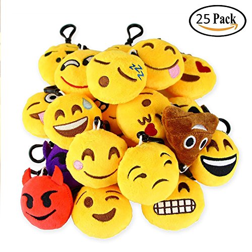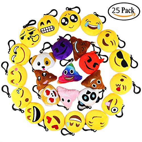 Emoji Novelty Keychain for Kids, 2" Mini Emoji Plush Toy Pillow, Party Bag Fillers Gifts Supplies for Children 25 Pack by VMIZIV