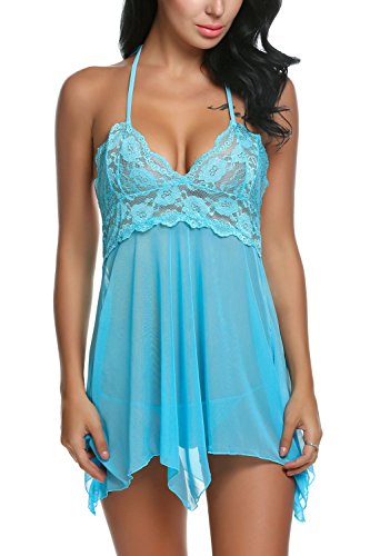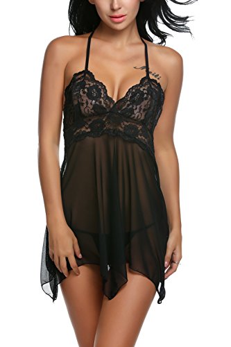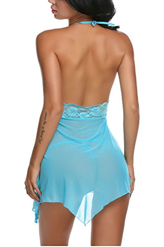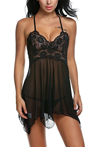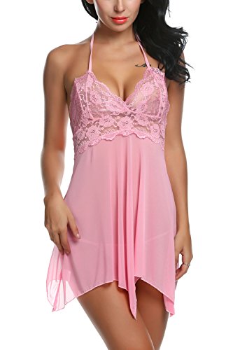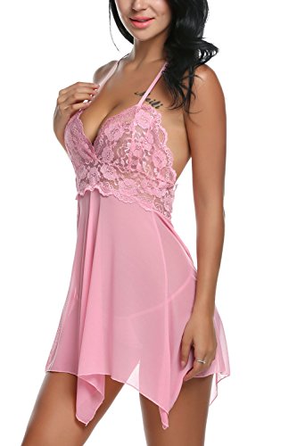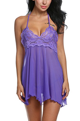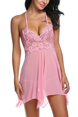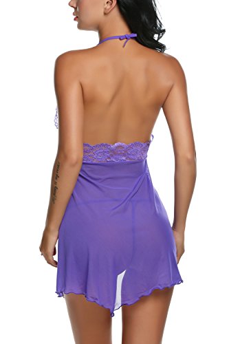 Binding : Apparel Product Description 100% Brand New Brand Name: Avidlove Material: Lace and Mesh 4 Colors Available: Pink, Purple, Black, Blue Collar: Halter Sleeve: Sleeveless Style: Sexy Zipper: No Dress Hem: Ruched Dress Length: Above Knee Pattern: Solid Occasion: Night wear Garment Care: Hand-wash. Unique style, make you more beautiful, fashion, sexy. Package Content: 1 x Women Dress, 1x Women G-string Style1 Size Measurement: M size for Bust 30.4"-34.3"---G-string Waist 23"-26.5"---Dress Length (without strap) 25" XL size for Bust 32"-35.9"---G-string Waist 23.2"-27.3"---Dress Length (without strap) 25" XXL size for Bust 33.5"-37.4"---G-string Waist 23.4"_28.5"---Dress Length (without strap) 25.4" XXXL size for Bust 35.1"-39"---G-string Waist 23.6"-29.6"---Dress Length (without strap) 25.4" 0