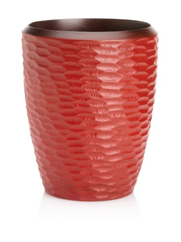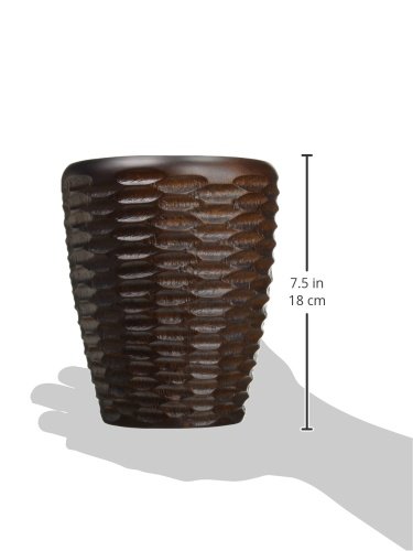Hand-carved. Easy care food-safe. Can be hand washed and cleaned up easily. Made from environmentally-friendly reclaimed mango wood. Chocolate and lacquer finish. Made in Thailand. 6 in. Dia. x 7 in. H (1.2 lbs.). Interior damp rated for use. Warranty: 90 days limited. Casual dining collection. This hand-crafted Utensil Vase is the perfect size for stashing several of your favorite spatulas, turners and tongs near your prep and cooking area. It's large enough for our longest servers but compact enough to tuck in next to the toaster or use it at the table for buffet utensils or even a centerpiece arrangement. Perfect for indoor and outdoor dining. Each item in the Mango Honeycomb Chocolate grouping is an enigmatic and tactile bright brick red honeycomb texture carved into the outer surface and a smooth interior. These products are all hand-carved and finished, so each piece reflects the variations natural to handmade items. All items are finished in a food-safe lacquer. We recommend hand washing and drying for all items. These stylish vases are carved from mango trees grown in Thailands vast mango plantations. The Mango tree bears fruit for about 20 to 30 years, after which time it is cut down by the farmer to make room for new seedlings. The creamy, dense mango wood is then reclaimed by local craftsmen for carving into a wide variety of beautiful products. The artisans working mango wood pay careful attention to the individuality of each and every raw slab of wood that comes into their hands, and the results are wonderful. Each piece in this collection has a live edge of contrasting tree bark around the rim which reminds one that each tree has a character and texture all its own.Feature