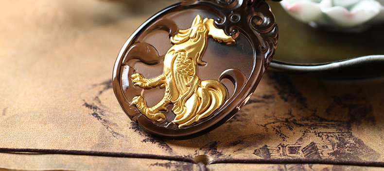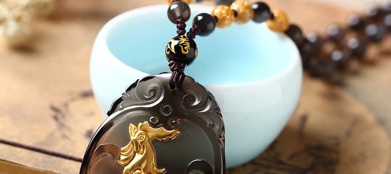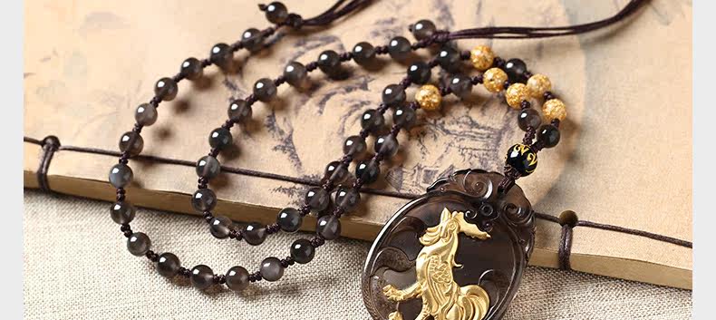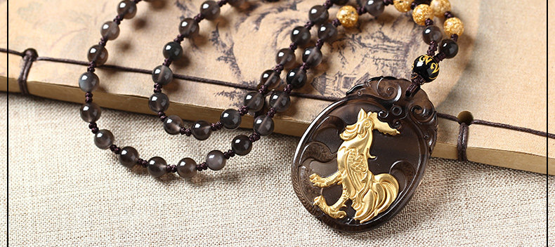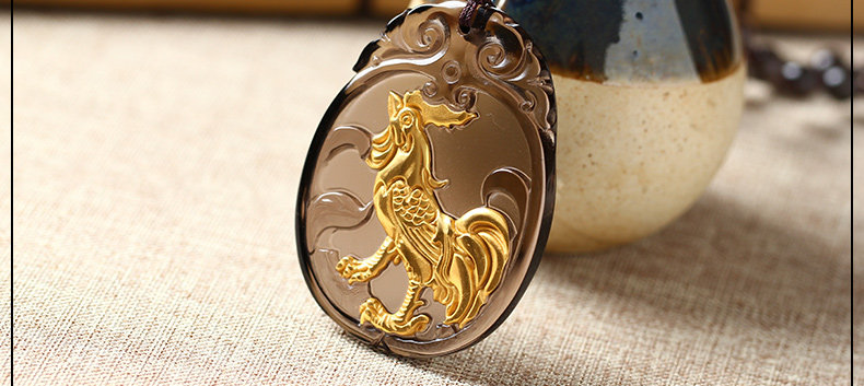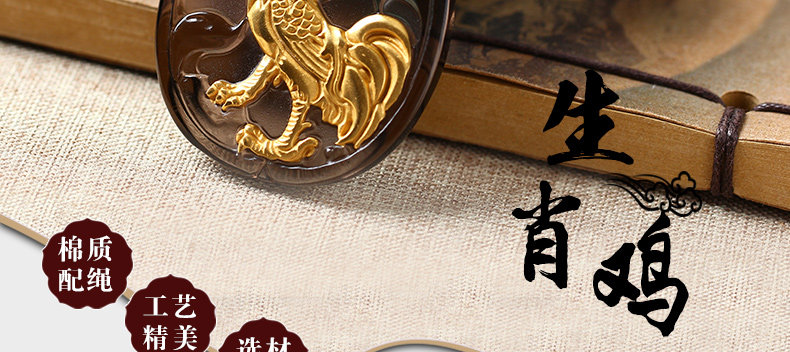 开光属鸡人冰种镀金黑曜石十二生肖鸡酉食乙庚酉吉照岁吊坠