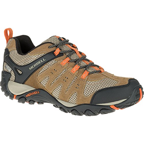 Binding : Apparel Product Description Tackle the trail in comfort. The Merrell Men's Accentor Stretch Walking Shoe has a durable, breathable suede and mesh upper. The Aegis(R) antimicrobial solution reduces shoe odour and keeps your feet fresh.The Merrell Men's Accentor Stretch Walking Shoe offers comfort and protection. Its bellowed tongue keeps out debris, with a sticky rubber outsole for traction and air cushion in the heel to absorb shock and add stability.FeaturesWalking Shoe from MerrellSuede and mesh upper - Durable and breathable.Aegis(R) Antimicrobial solution treatment - Reduces shoe odour and keeps feet fresh.Bellows tongue - Keeps out debris.EVA removable footbed - Underfoot comfort.Merrell sticky rubber outsole - For excellent traction.Moulded nylon arch shank - For added stability.Merrell air cushion in the heel - Absorbs shock and adds stability. 0