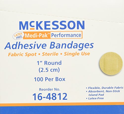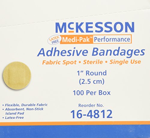 -. Feature : Adhesive spot bandage medi-pak performance 1 inch diameter fabric round tan sterile / Quantity : box of 100 / Color : tan / Flexible, durable fabric / Not made with natural rubber latex