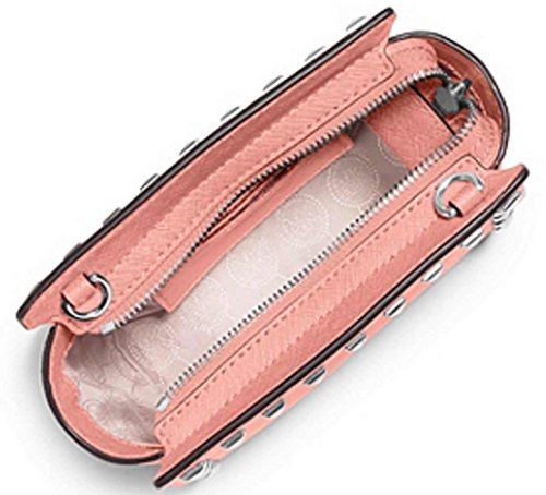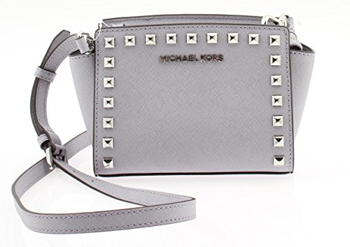 Product Description A petite-size purse that's perfect for fitting all your after-hours essentials, this MICHAEL Michael Kors mini messenger is made from Saffiano leather and finished with a chic panel of pyramid studs. Imported Leather Adjustable shoulder strap with 23"-26" drop Top zip closure Exterior features silver-tone hardware. Interior features 3 card slots 0