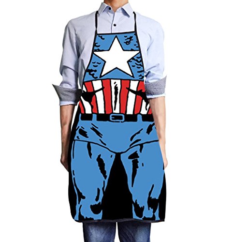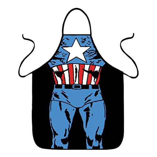 FASHION ALICE Captain America Apron Heroic Figure Role Play Apron,Couples Apron Kitchen Aprons Funny Personality Sexy Originality Cooking Aprons Christmas Gift,Including key ring bottle opener