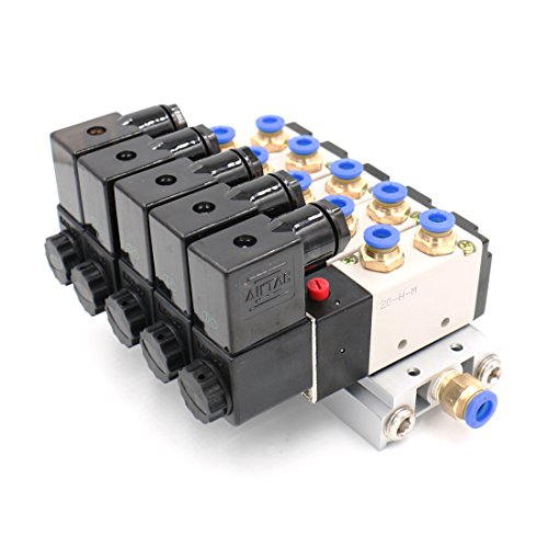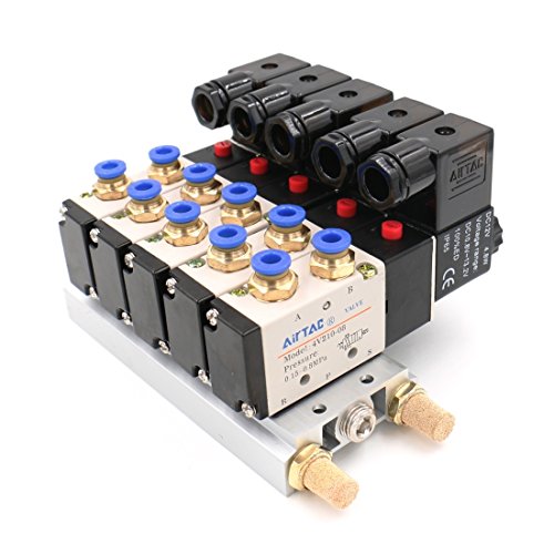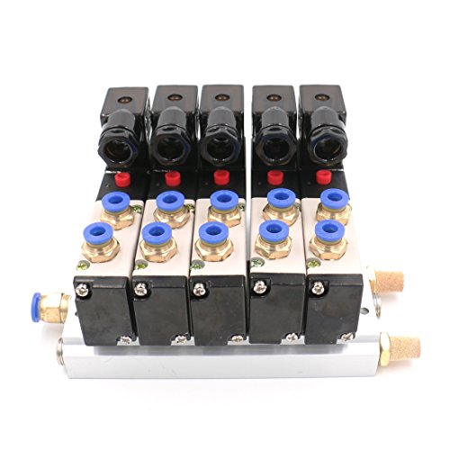 Baomain Solenoid Valve 4V210-08 DC 12V PT1/4 2 Position 5 way Base Muffler Quick Fittings Set