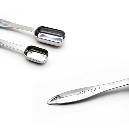 - Sleek narrow design.No more sticking your fingers in the spice jar or pouring ingredients into measuring cups first. Our narrow shaped spoons make it easy to measure from tiny jars unlike those bulky rounded and cupped tablespoons. Super lightweight with long nonslip grip handles. Ideal for kids, adults, beginners and master chefs