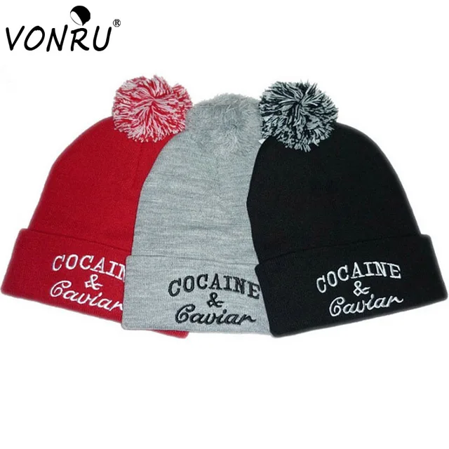 | [해외]새로운 스타일의 Cocain & 캐비어 비니 볼 힙합 캡 남성 따뜻한 니트 모자 Gorras 패션 캐주얼 모자 1MZ0511 |