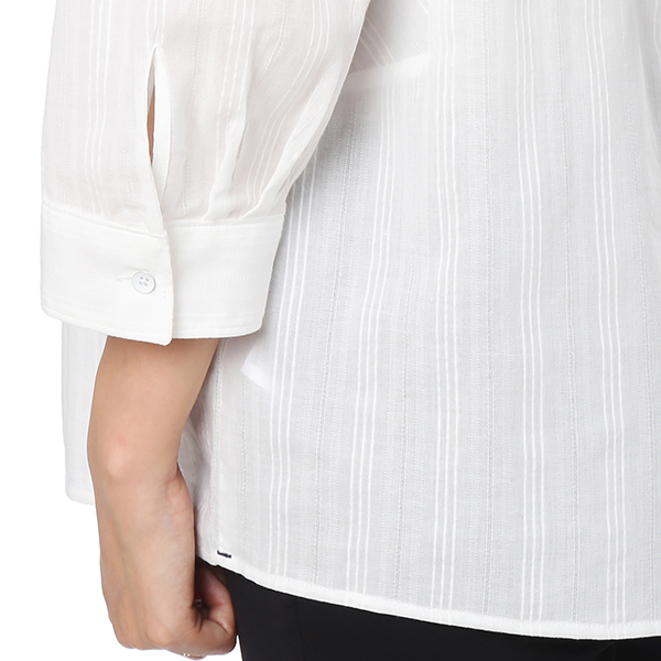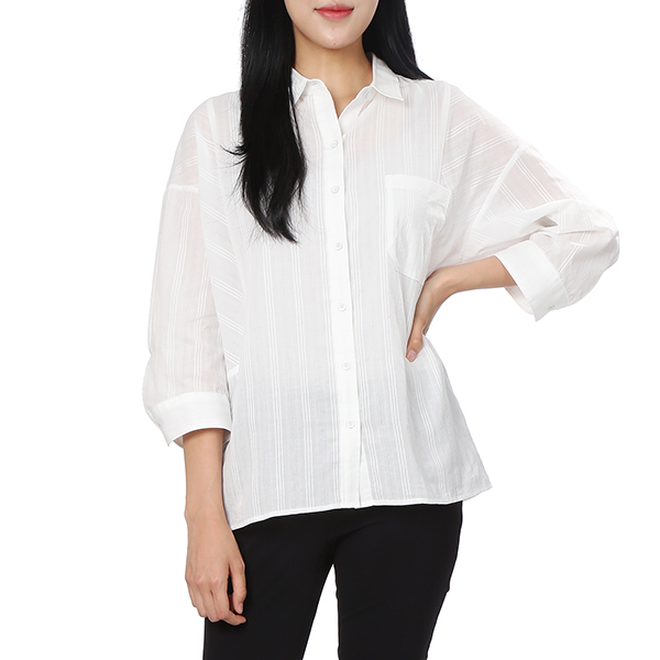 은은한 스트라이프 패턴의 자수 장식이 어우러저 멋스러운 외관을 연출하였으며 7부 길이감의 소매를 더하여 데일리하게 활용할 수 있는 셔츠입니다.