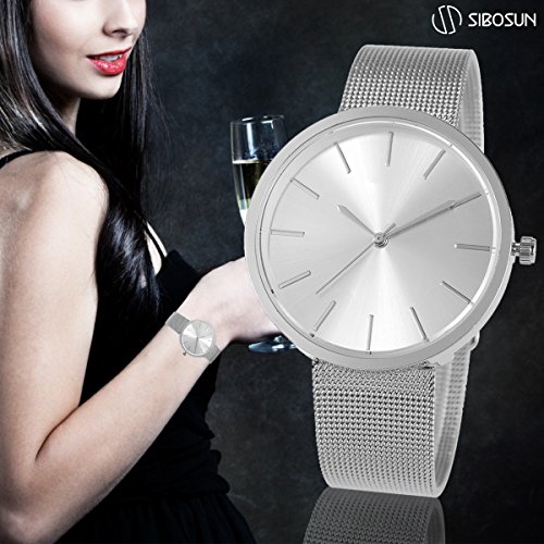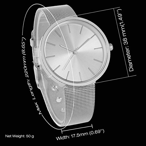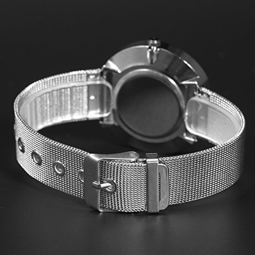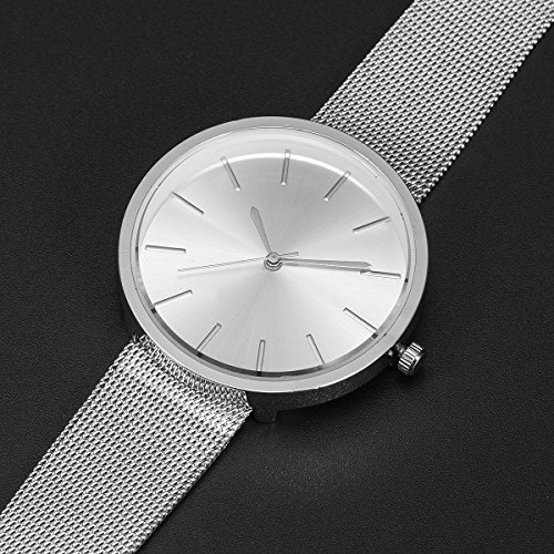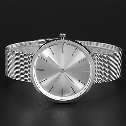 1. Gleaming Appearance - Beautiful Outstanding Good Looking - Fashion Women Lady Wrist Watch Mesh Stainless Steel Milanese Band Silver Minimalist Elegant Quartz Analog