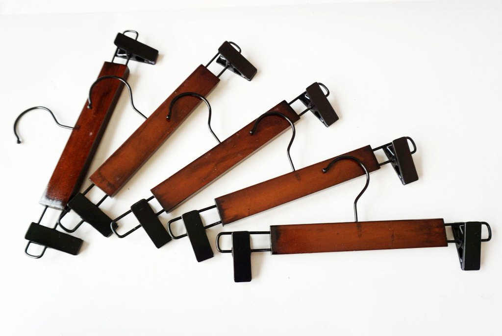 It is a natural wooden hanger for bottoms such as skirts and trousers.