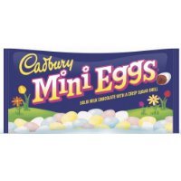 -. Feature : Cadbury Mini Eggs are a "can't miss" hit with family and friends / Colorful candy shells conceal the rich taste of Cadbury Milk Chocolate / Perfect for Easter baskets / Hide a bunch of these treats in plastic eggs for the neighborhood Easter egg hunt / Includes 3 bags, Cadbury Easter Candy Coated Mini Eggs (8-Ounce bag)