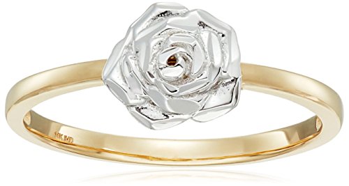 -. Title : 14k White Gold Flower Ring with Yellow Gold Ring, Size 7