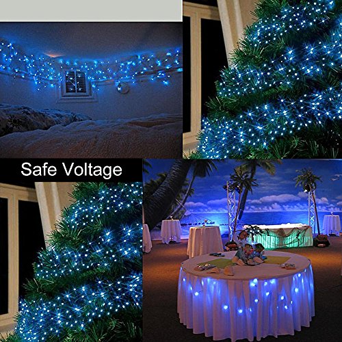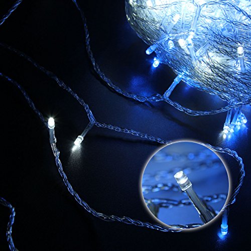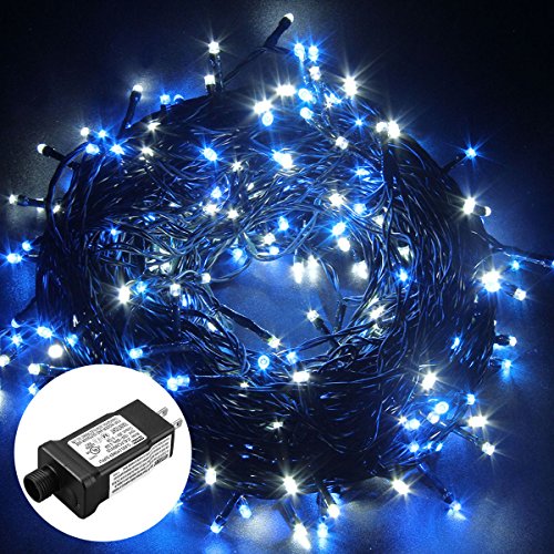 Excelvan Safe Low Voltage 8 Modes 250 LEDs 50m/164ft Dimmable Fairy String Lights for Bedroom Patio Garden Gate Yard Party Wedding Christmas Decoration, White+Blue