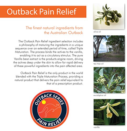 - Feature : OUTBACK NATURAL PAIN RELIEF®: The most potent topical OTC pain reliever on the planet. It does NOT contain menthol, capsaicin, camphor or any other cheap ingredients that just trick your pain sensors, Outback penetrates deep in your joints and muscles and reduces inflammation and swelling. / MORE THAN JOINT PAIN RELIEF: Restore your range of motion. Sleep better. Enjoy your favorite activities again. Don't settle for an arthritis cream or gel. This roll on oil works better and faster than any pain relief cream. Outback is chosen by sufferers of Joint Pain, Nerve Pain, Muscle Pain, Arthritis, Carpal Tunnel Syndrome, Tennis Elbow, Tendonitis, Bursitis, Sciatica, Gout, Back Pain, Neck Pain, Shin Splints, Fibromyalgia, Plantar Fasciitis, Heel Pain, etc. / PATENTED BLENDING PROCESS: The anti-inflammatory properties of Tea Tree Oil and Eucalyptus are well documented, but we've added vanilla to act as a vasodilator so this natural topical pain reliever can penetrate deeper than previously thought possible. / IMMEDIATE, LASTING RELIEF: Outback is mild to the skin and goes to work twice as fast as any pills or supplements. Outback is the topical pain relief solution that works BETTER with daily use instead of worse. You can use it as often as necessary. It has a pleasant earthy smell of vanilla and eucalyptus. / WORLD FAMOUS 100% GUARANTEE: If you don't love it, you'll get every single penny back. Consider getting two, one for you and one for your very best friend.