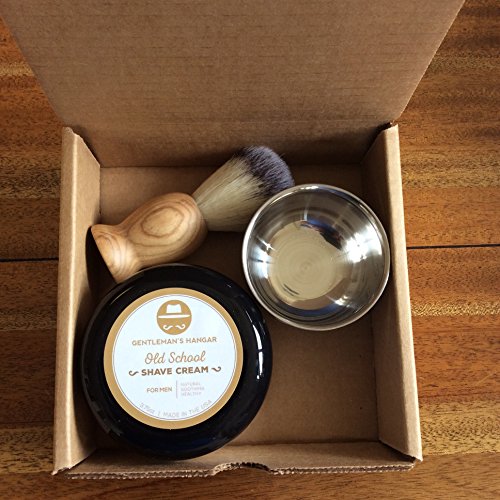 - Feature : We believe in responsible ingredients. We're proud to say our Old School Shave Cream is tested on men, never on animals. Our cream is made with natural ingredients, Paraben-free, and made in the USA / Gentleman with SENSITIVE SKIN? Organic Aloe leaf juice, green tea extracts and Vitamin D will keep your face looking and feeling fresh and reduce irritation / Includes synthetic wood-handled shave brush and 72cm stainless bowl for building your lather / Refined Scent: Lightly scented so it won't interfere with your favorite after shave / A NOBLEMAN'S GUARANTEE - If our Gentleman's Hangar Old School Shave Cream isn't what you expected, let us know and we'll make it right...from one gentleman to another