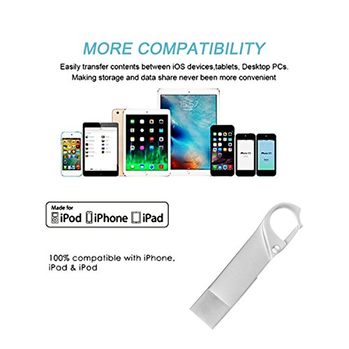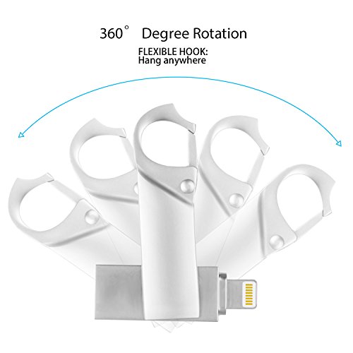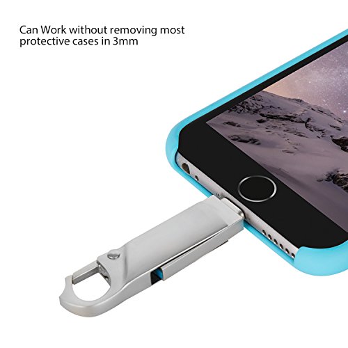 【An-ti Lost Design and Needn't Remove Case】Little drive is with hook you can hang it on a keychain 、wallet buckle and bag,also needn't any extra lanyard.with a lightning connector base that is 3mm larger than normal ,you can connect to most phones even with cases on.
