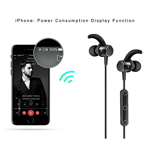 -. Feature : Automatic Turn On/off: Suction off/Separate boot, boot does not match the case 5 minutes after the automatic shutdown. Hands Free Calling, Acoustic answer buy "Yes" or "No".(Incoming Call Report). Noise Canceling earbuds include S/M/L ear tips and two types of different ear hooks to ensure a comfortable and secure fit for everyone.Oblique in-ear design helps snug the earphones in your ear canal in a cosy way. / Magnetic Connection: Easily stow your Earbuds by wearing them around your neck. Instantly access your Earphones anytime without searching your pockets.So cool! The magnets are a nice touch allowing to keep them around our neck without worrying about them falling off. / Sweatproof for Running : Just keep your step & enjoy your gym/sports ,no need to worry about your running sports headphones. / Long-Lasting Display : Up to 6h music time/10h talking time/200h standby time, less than 2.5h charging time. Support two connected devices simultaneously, seamless syncing to your favorite wireless devices, including iPhone, iPad, Android cell Phones, Windows Phones, and more up to 10 meters /33". / Superior Sound: The advanced CSR 8640 chip with Bluetooth 4.1 technology transmits high quality sound. Wireless Bluetooth V4.1 Headphone, produce incredible sound quality with deep bass and crystal clear treble, wireless earphones for music. Works great for soundtracks, audio books, relaxing sounds, and even technical music.