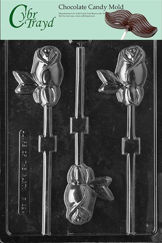Cybrtrayd Life of the Party F089 Rose Lolly Flower Chocolate Candy Mold in Sealed Protective Poly Bag Imprinted with Copyrighted Cybrtrayd Molding Instructions