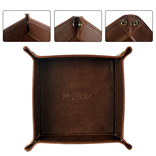 -. Feature : MATERIAL: Leather; EASY CLEANING: Wipe clean with soft cloth; / DESIGN: First-grade workmanship, elegant and modern style with rivets on the corners, must-have in your home; / EASY FOLDABLE: Convenient and practical to use it due 4 snaps on the corners; / APPLICATION: for cell phone, watches, keys, jewelry, coins and other small items. / DIMENSIONS: Snapped Form - 5.5" x 5.5" x 1.3" (LxWxH); Unsnapped Form: 7.6" x 7.6" (LxW); Weight: 2.15 OZ;