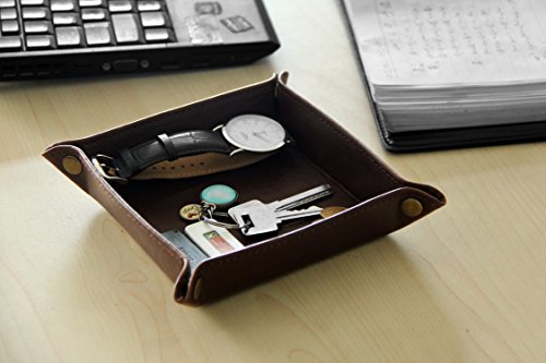 -. Title : PU Leather Key Jewelry Catchall Valet Tray Box Bedside Storage Organizer for Change, Coin, Key, Phone