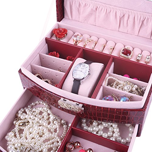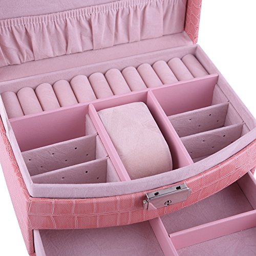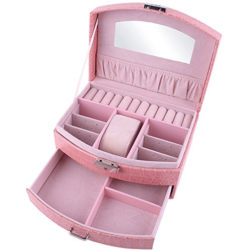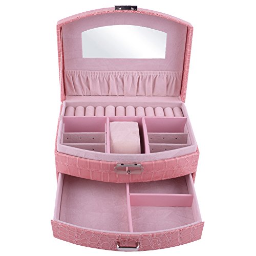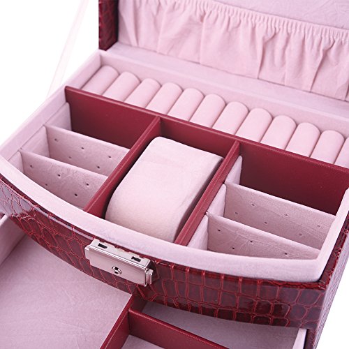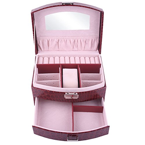 -. Title : GUANYA PU Leather Two Layers Portable Jewelry Box With Mirror Organizer For Gift