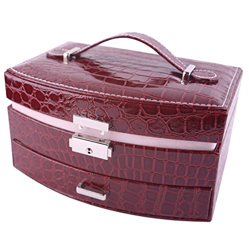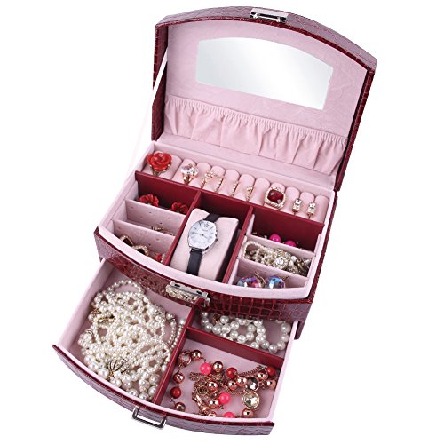 -. Feature : Product brief: mirror &1 watch Slot & 1 drawer & Tote & with key lock ( Jewelry not include ) / Earrings, rings, brackets, necklaces,watch ,etc can be held / Keep all your beautiful jewelry organized and elegantly displayed with this jewelry organizer / Size: 20*15*10 CM & Weight: 0.63 KG / CUSTOMER SERVICE - If for any reason you're not completely happy with your purchase- if it's damaged in shipping, or even if you change your mind - simply let us know an we will either replace it or refund your money your choice!