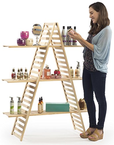 Displays2go 3 Tiers Wood A-Frame Shelf, 48 x 57 x 14.5-Inch, Pine