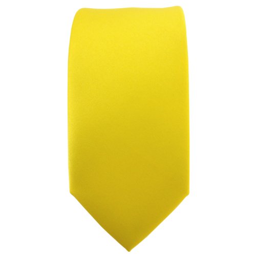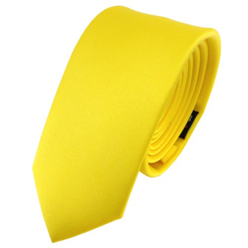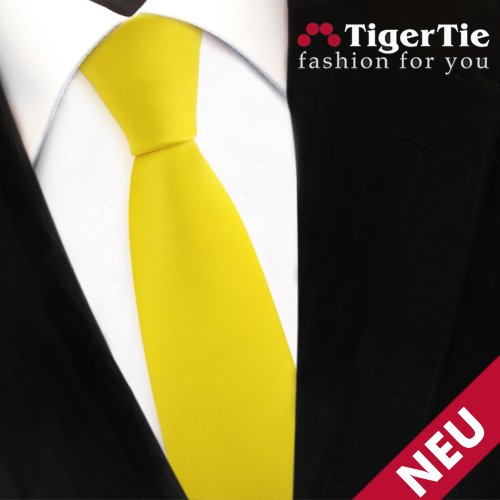 schmale TigerTie Satin Krawatte in gelb leuchtgelb knallgelb Uni - Schlips Binder Tie