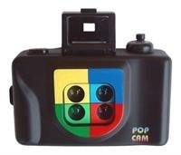 It's not just a photograph, it's a work of Pop Art! The Pop Cam produces photos that mimic the image repetition and saturated color palettes of famous pop artists like Andy Warhol and Roy Lichtenstein. One snap of the Pop Cam takes four pictures in the span of one second and preserves them in four different hues on one single print. Each 4" x 2" x 1" plastic camera uses any standard 35mm film and has no flash. With some imagination and a little experimentation you might capture that perfect Pop Cam picture that will lead to your fifteen minutes of fame. Comes with all the details and instructions. Our pop art camera makes a very nice stocking stuffer gift.Feature