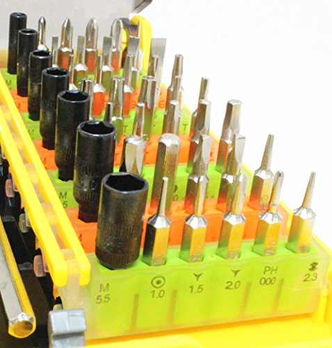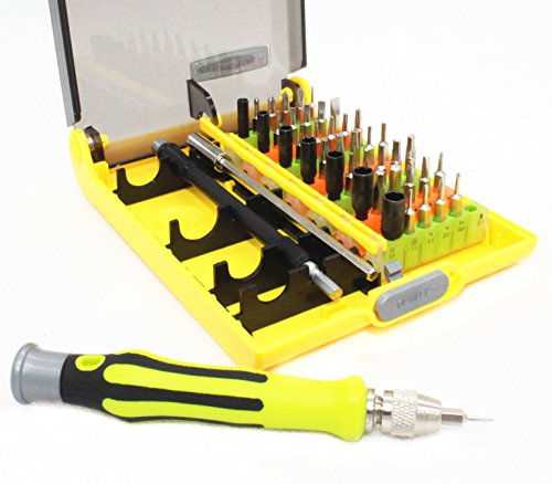 Features: Adjustable rod for different demands of lengths Comes with extension rod can be inserted into the handle for length adjustment Highly precise tips in various specifications for different uses The handle is designed based on Human Mechanics, which makes operation more efficient and convenient All tips are made of supreme chrome/vanadium steel (6150#), and specifically heat-treated (Hardness HRC52°C -56°C) 45pcs in 1 precision screw driver set includes 42 insert bits, 1pc Rubber Handle(approx 11.5cm), 1pc extension rod(12.0cm), 1pc Metal Handle(approx 11.9cm) Brand new tool kit would be the perfect accessories for changing out your objects Screwdriver handle material is PP&TPR and non-slip Screwdriver handle with activities rotating cap Precision screwdriver set can be used for a variety of projects from hobbies, automotive work and the computer repair and other electronic repair Specification: 45 in 1 pocket precision screwdriver set Trox screw driver : T4, T5, T6, T7, T8,T9, T10, T15, T20 Hex screw driver : H1.0,H1.5,H2.0,H2.5, H3.0,H3.5, H 4.0 Cross screw driver : PH00,PH0, PH1, PH2 Flat screw driver: 1.3,1.5,2.0,2.5,3.0, 4.0 Y screw driver : Y1.5, Y2.0 Five-star screw driver:1.5,2.0 Triangle driver:Entity triangle 2.0 and 2.3 Others:M2.5,M3.0,M3.5,M4.0,M4.5,M5.0,M5.5,PZ0,PZ1 etc And so on(More details please see the picture) Package includes: 1 x 45 in 1 Precision Screwdriver Tools Set for RC PC Mobile Car NOTE: Sourcingbay created this product page, only Sourcingbay will offer the exact product! Please notice it.Feature