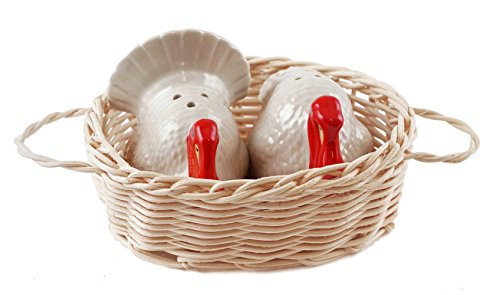 Thanksgiving Turkeys on Straw Basket Salt & Pepper Shaker Set