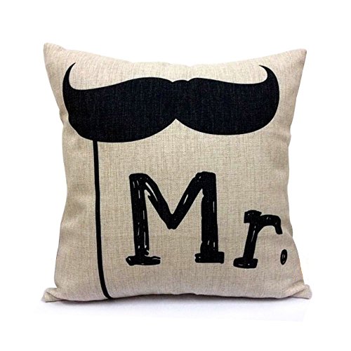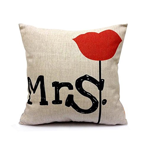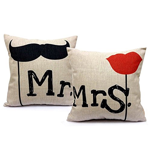Mr and Mrs 18 X 18 Inch Cotton Linen Home Decorative Throw Pillow Covers Cushion Cover Couple Love Pillow Case Set of 2 (Wedding Gift)