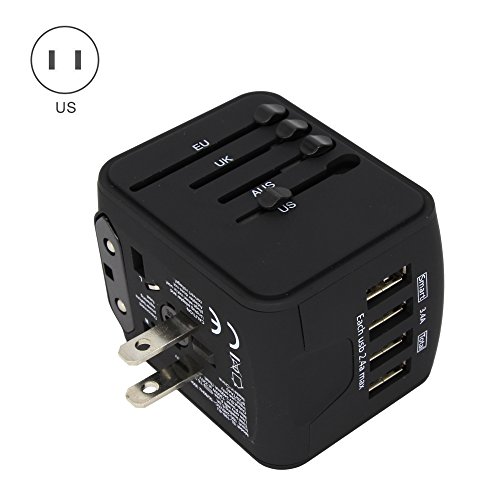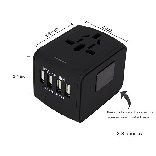 - Safety Tech - Build-in Spare Fuse. Patented Circuit Board Protects Your Valuable Gadgets from Short Circuits. Travel Adaptor AC Plug Charges Al USB Devices for Cell phone, Bluetooth speaker, Digital Cameras, Converter etc.