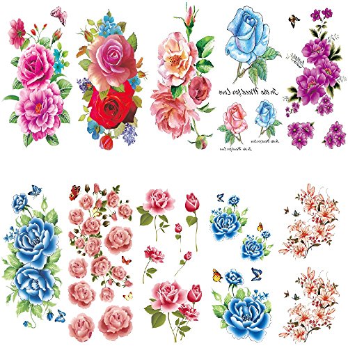 Temporary Tattoos Arm Body ,Chest ,Back Tattoo Sticker for Men and Women Colorful Flower Temporary Tattoo Pack Potpourri 10 Sheets (xianh02)