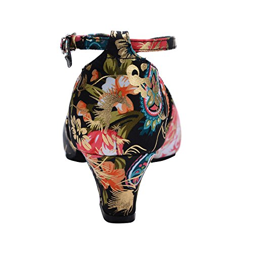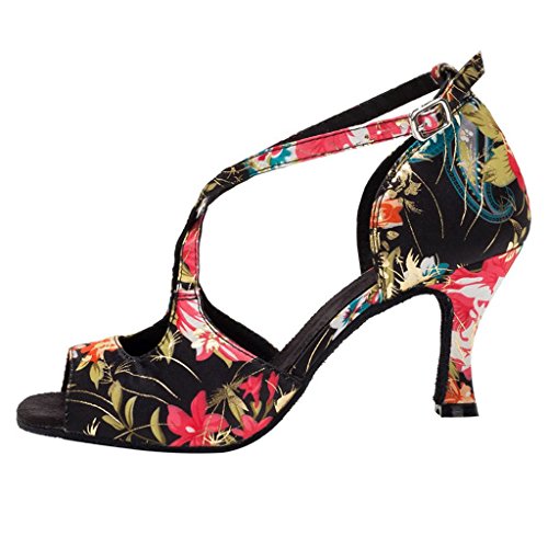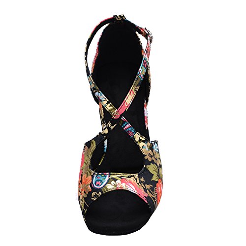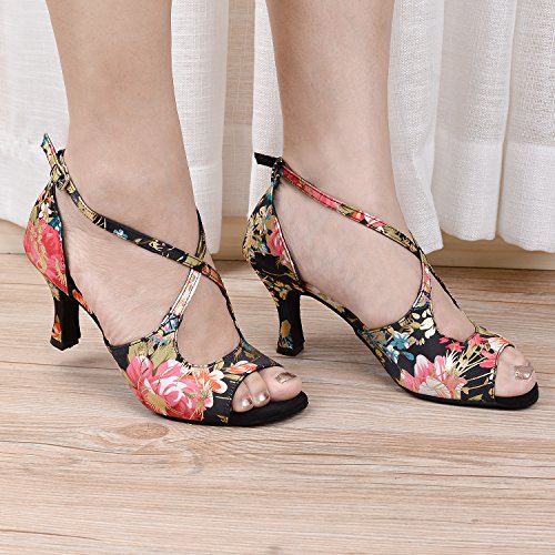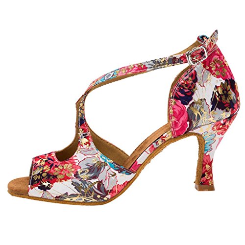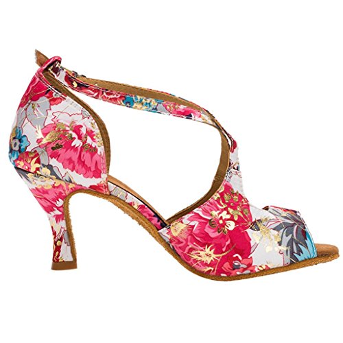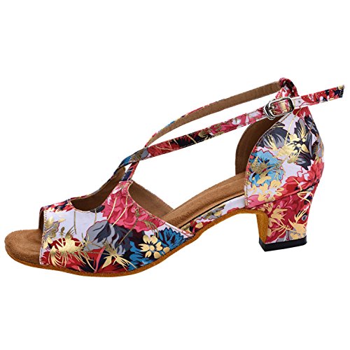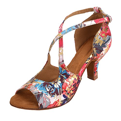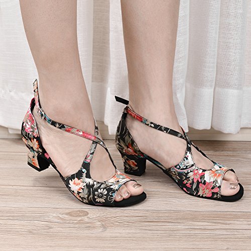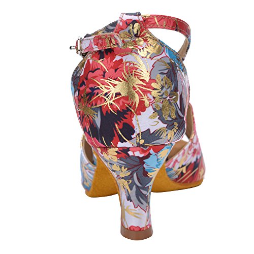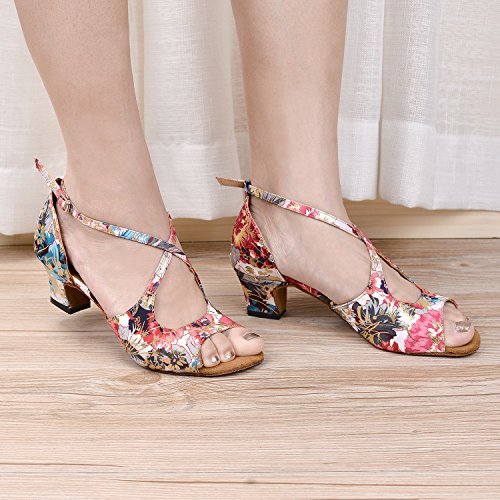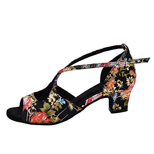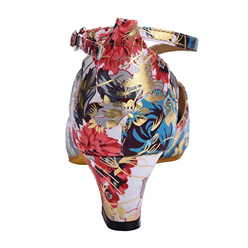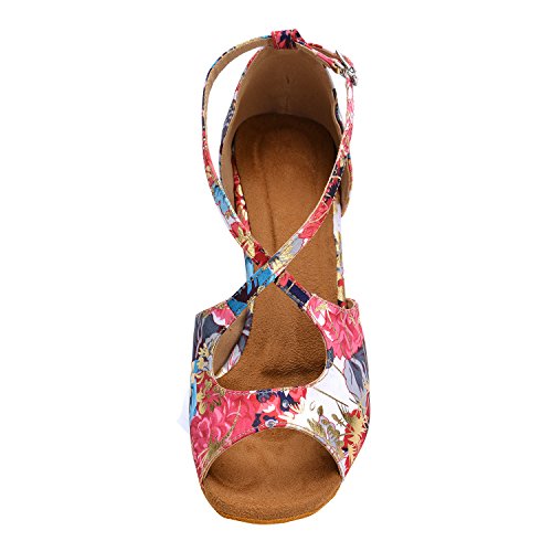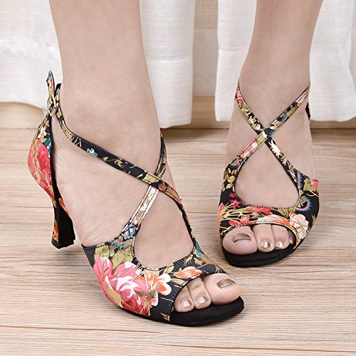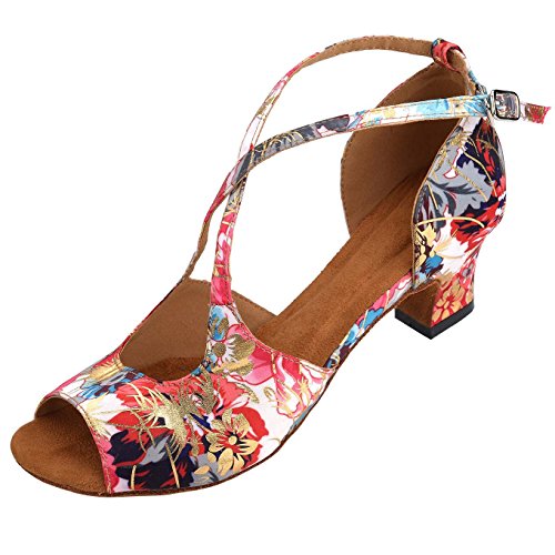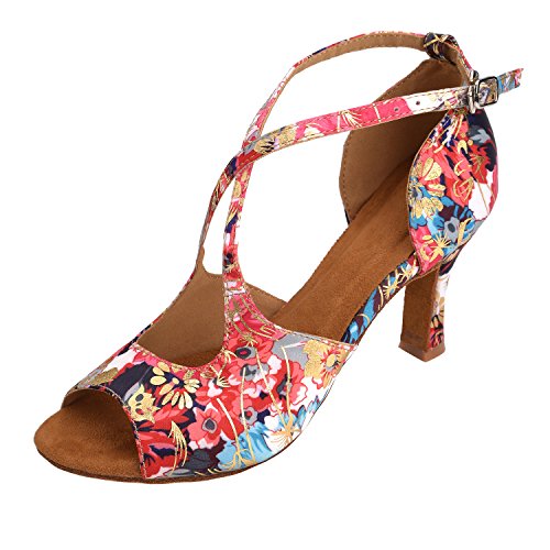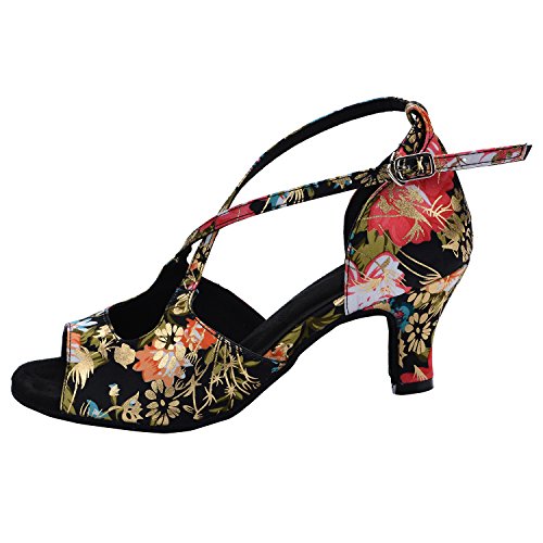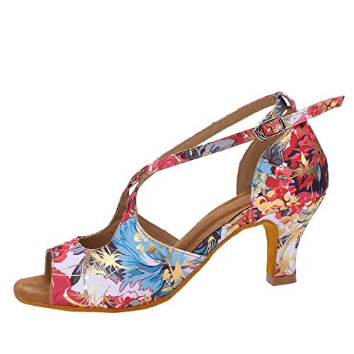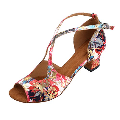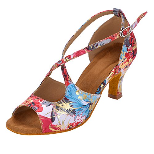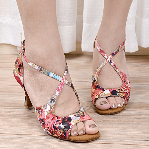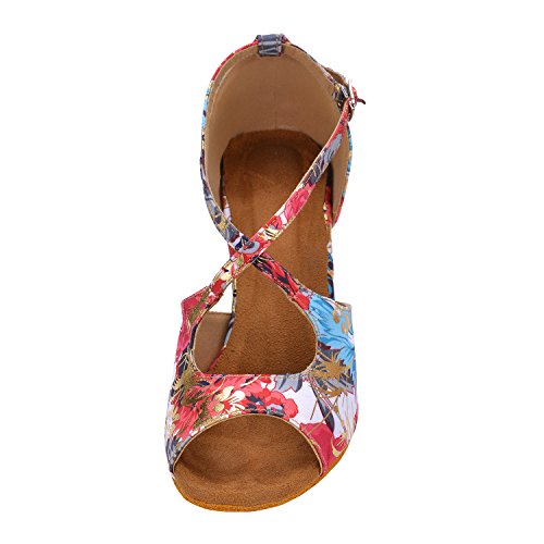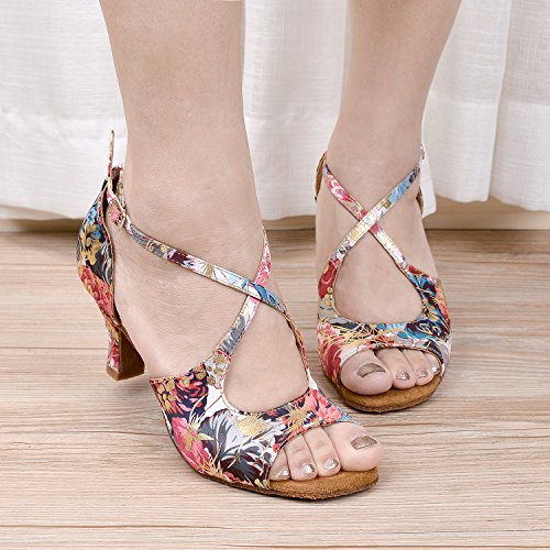 | HXYOO Indoor Dance Shoes Women For Latin Ballroom Salsa Floral Satin 3" 2.5" 2" Heel |
