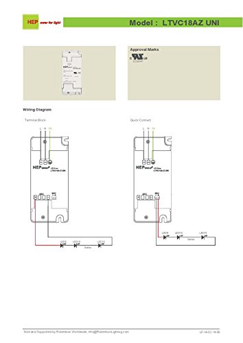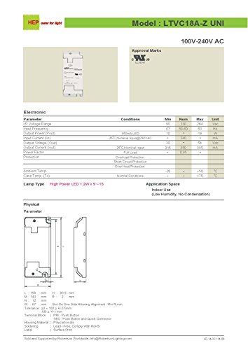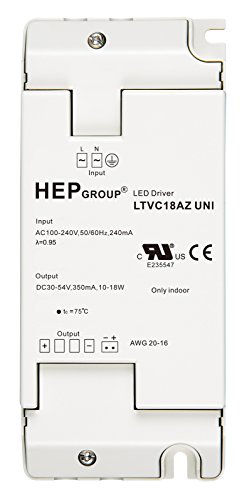 ROBERTSON 3P30081 LTVC18AZUNI LED Driver, 10-18 Watt, 100-240Vac Input, 350mA Constant Current, 30-54Vdc Output