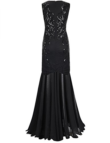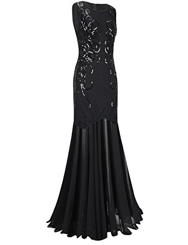 PrettyGuide Women 1920s Evening Gown Sequin Long Homecoming Formal Dress L Black