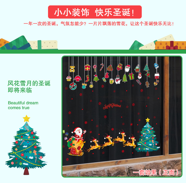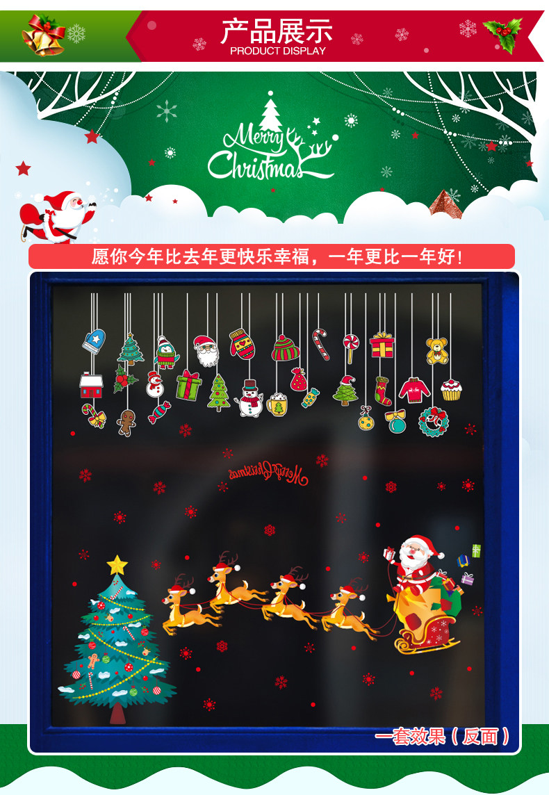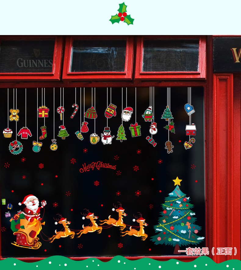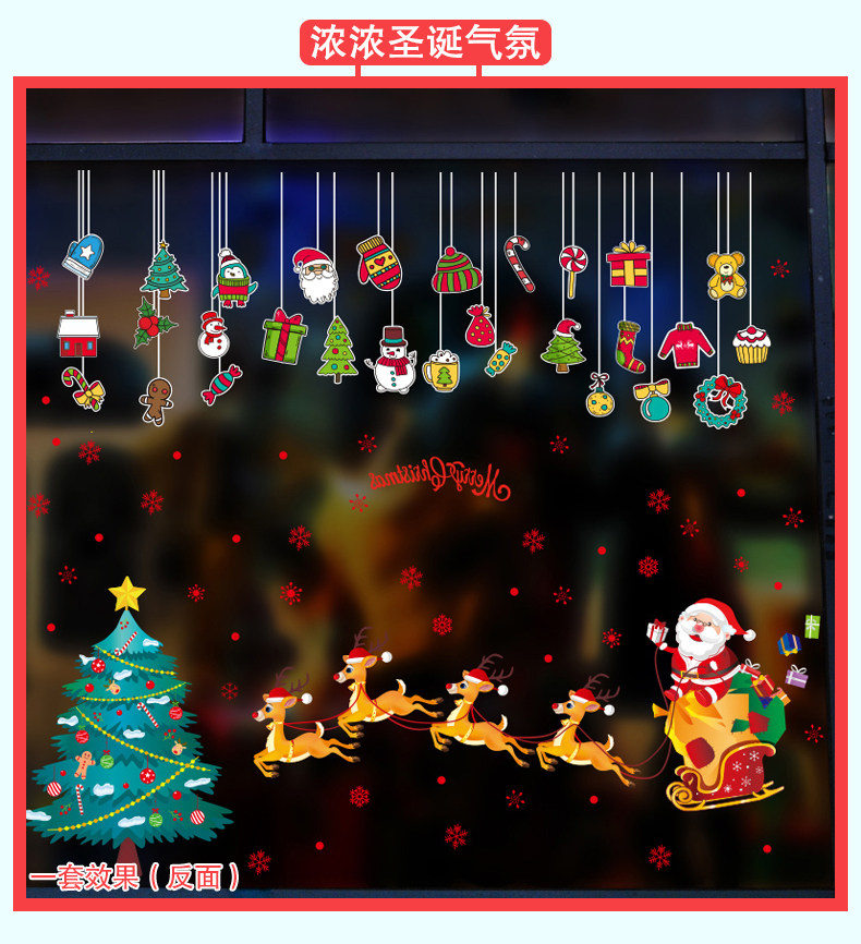 圣诞装饰品商场店铺橱窗玻璃贴纸节日场景布置卡通挂饰雪橇贴画