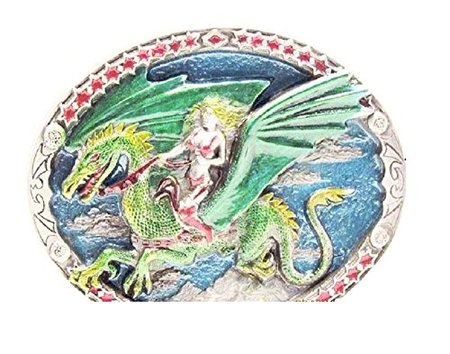 Product Description Awesome Warrior Princess Dragon flying among the stars. Buckle new never been worn condition. Measurements: 2.75" wide (all measurements are approximate). Fits a 1 3/4" wide belt. Vintage FANTASY ART BELT BUCKLE 0