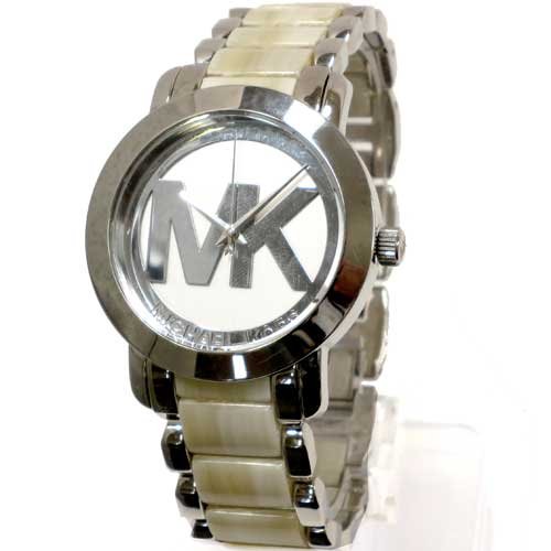 -. Title : Michael Kors Silver Dial Steel and Beige Acrylic Ladies Watch MK4304
