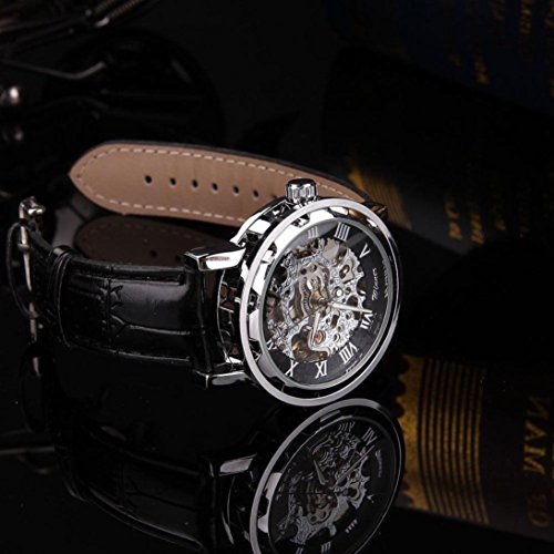 -. Title : Mens Watches, RIUDA Classic Men's Black Leather Dial Skeleton Mechanical Sport Army Wrist Watch