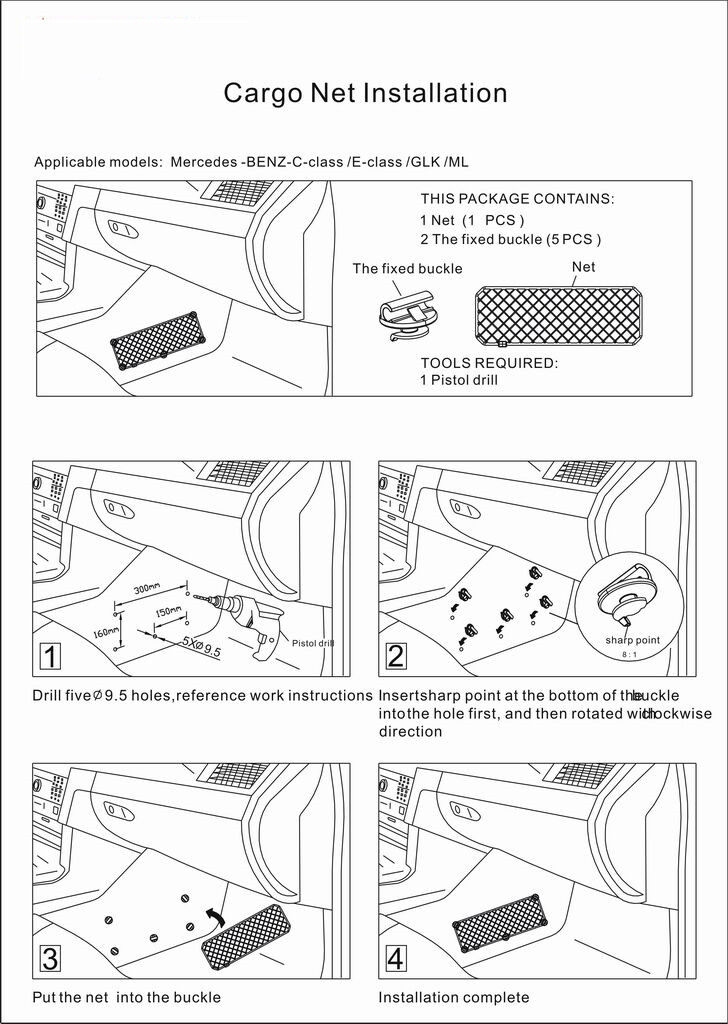 由于网兜安装的位置不尽相同,不同的车材料也不一样,购买前必须自行确认可以正常安装和使用。