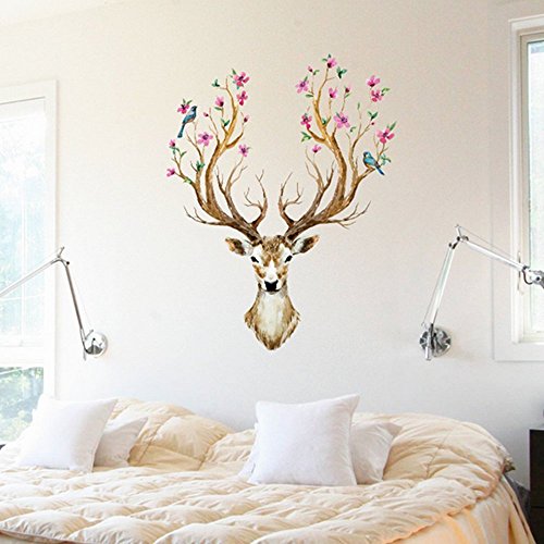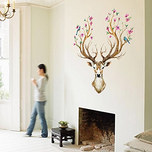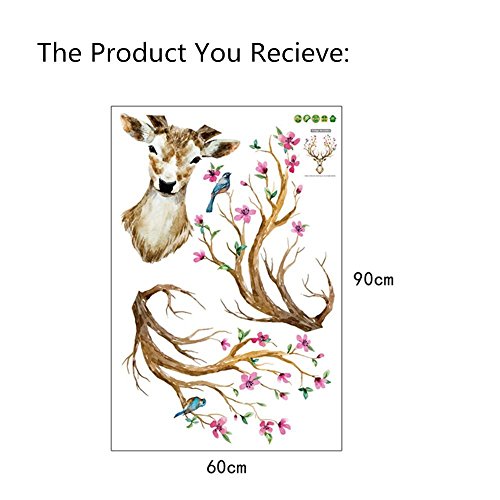 -. Feature : Booming Flower Antlers Sika Deer / Wall Sticker Original Size: 60 * 90 cm & 23.62" * 35.43" ; Wall Decor DIY Size:80.5 * 97 CM & 31.69" * 38.19" / Can be applied to any smooth surface, such as glass door, window pane, ceramic tiles in kitchen or bathroom, glasses, nursery,kide room / Special design for this is decorative and make your room special. It will give an amazing touch to your home interior / A beautiful wall art wall decal for your home or office will give your room a refreshing look, create an enchanting atmosphere.