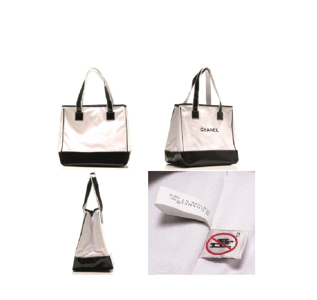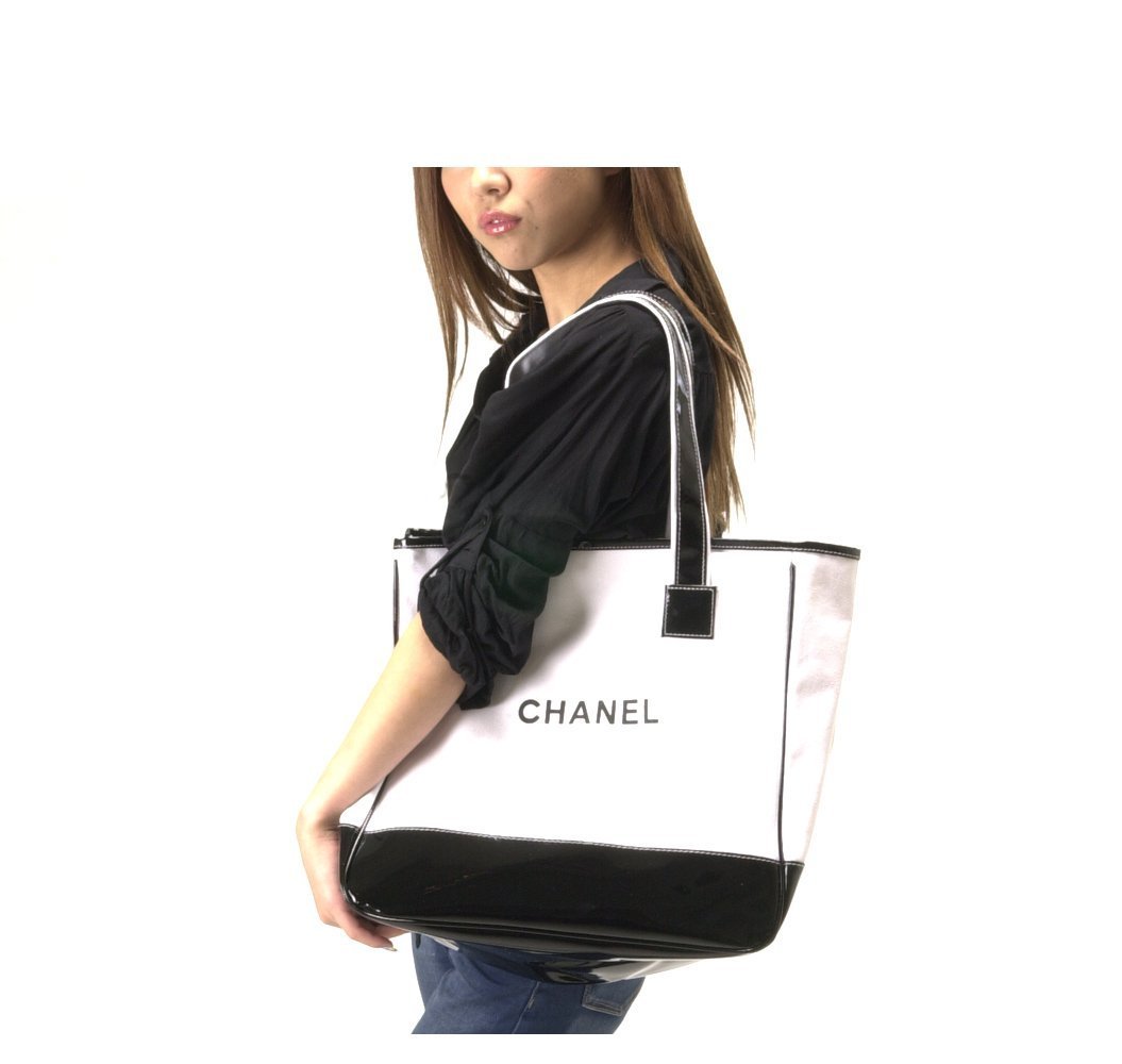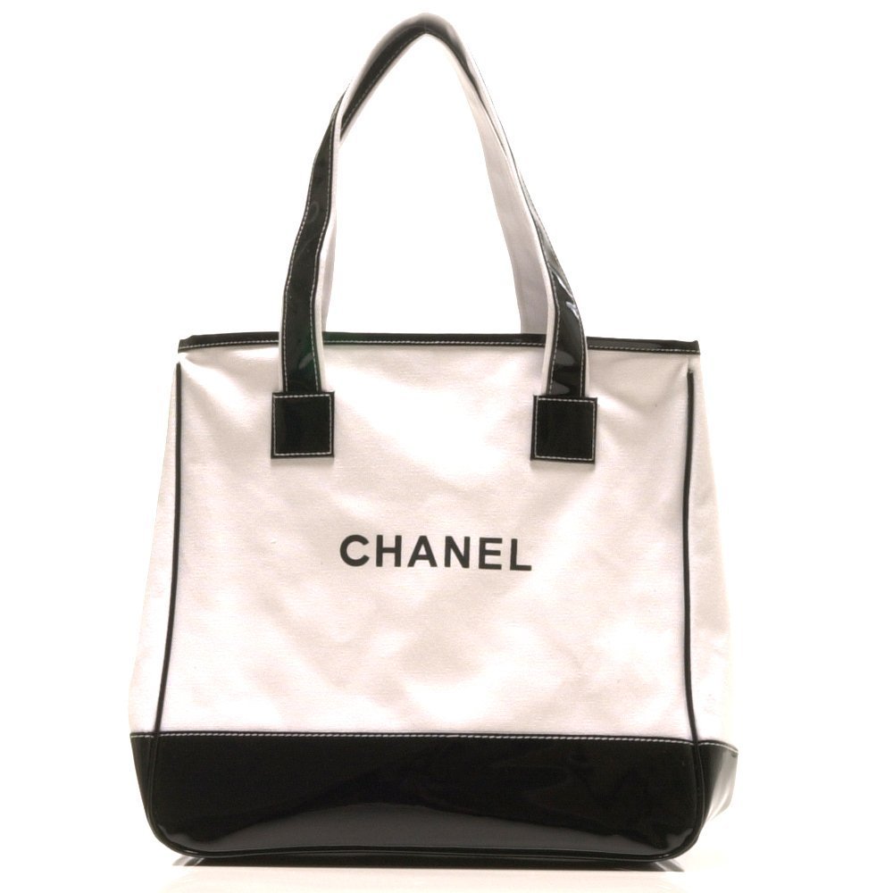 A tote bag that shines a simple Chanel character of black on a white body of luxurious enamel tone.